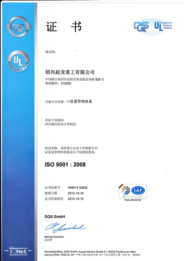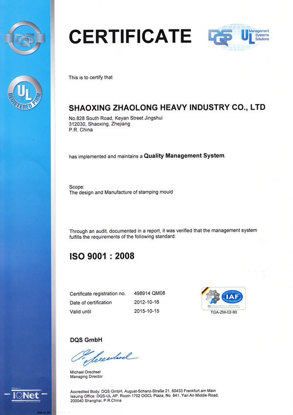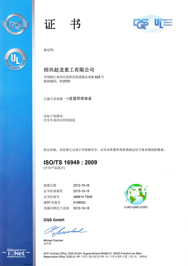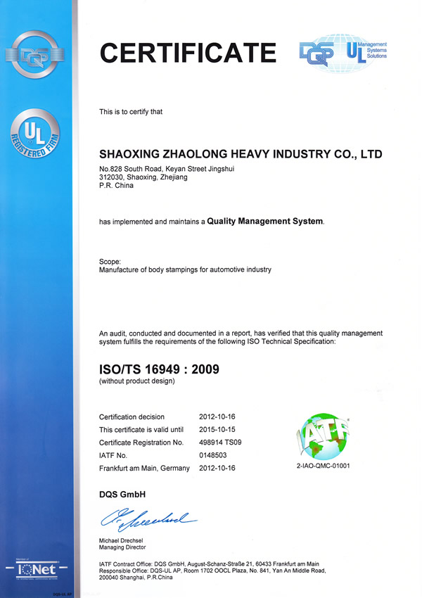 熱烈祝賀公司通過(guò)ISO/TS16949:2009和ISO9001:2008質(zhì)量管理體系認(rèn)證