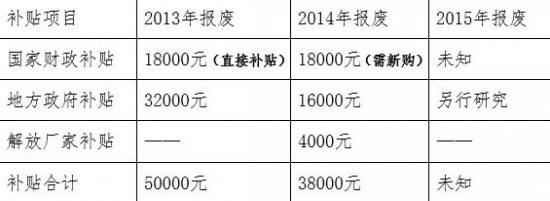 以上海為例:車主報(bào)廢2007年注冊(cè)登記的重型載貨車換購(gòu)解放J6P牽引,2013-2015年不同年份報(bào)廢所享受的補(bǔ)貼如下: